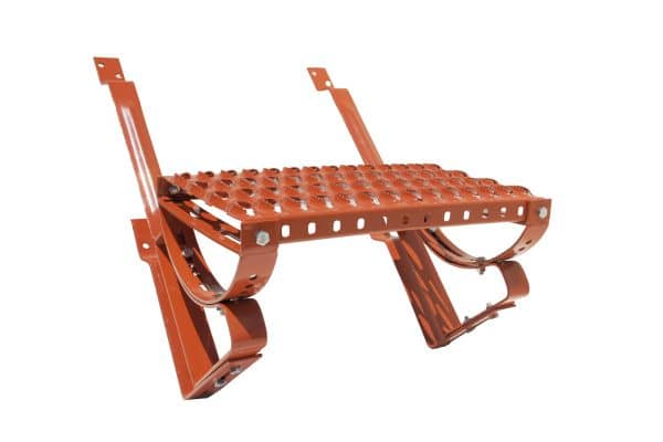 Μεταλλική σχάρα για την κεραμοσκεπή. Έχει αντιολισθητικό πάτημα και μπορεί να τοποθετηθεί σε κεραμοσκεπές με οποιοδήποτε τύπο πήλινων και τσιμεντένιων κεραμιδιών.Κατάλληλη κοντά σε σημεία όπου κάποιος μπορεί να εργαστεί στη στέγη,όπως φεγγίτες, καμινάδες, ηλιακούς θερμοσίφωνες, φωτοβολταϊκά. Χρήσιμη για τον κάθε τεχνίτη, αφού μπορεί να ακουμπήσει τα εργαλεία του με ασφάλεια επάνω στη στέγη. Σε μεγάλες κλίσεις ή σε επικίνδυνα σημεία μπορούν να τοποθετηθούν στη σειρά σαν σκαλοπάτια στέγης