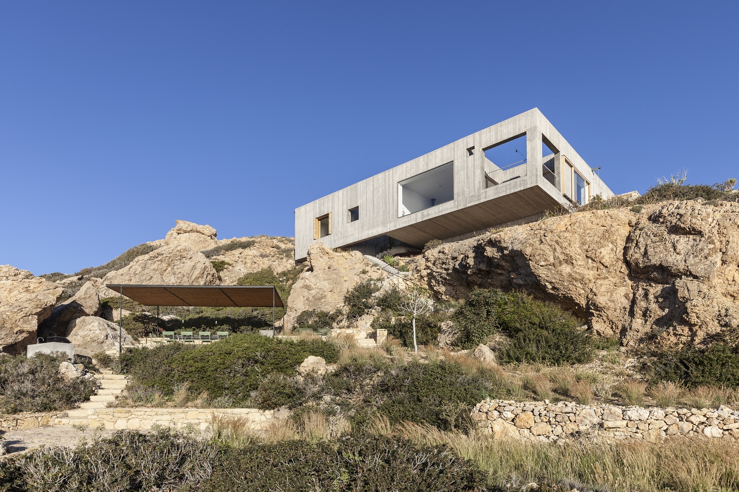 Σκαρφαλωμένο σε μια βραχώδη και απόκρημνη πλαγιά της Καρπάθου, το Patio House αποτελεί χαρακτηριστικό δείγμα της σύζευξης του αρχιτεκτονικού στυλ της νησιωτικής Ελλάδας και του αυστηρού σουηδικού μινιμαλισμού.