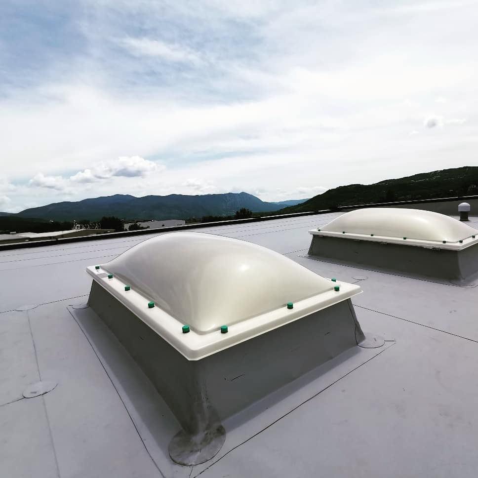Η κατασκευή τους βασίζεται σε πολυεστερική βάση και διαφώτιστο θόλο από πολυκαρβονικό ή ακρυλικό υλικό, με επιλογές θερμομόνωσης και πολλαπλών στρώσεων, ώστε να προσαρμόζονται στις ενεργειακές και λειτουργικές απαιτήσεις κάθε έργου.