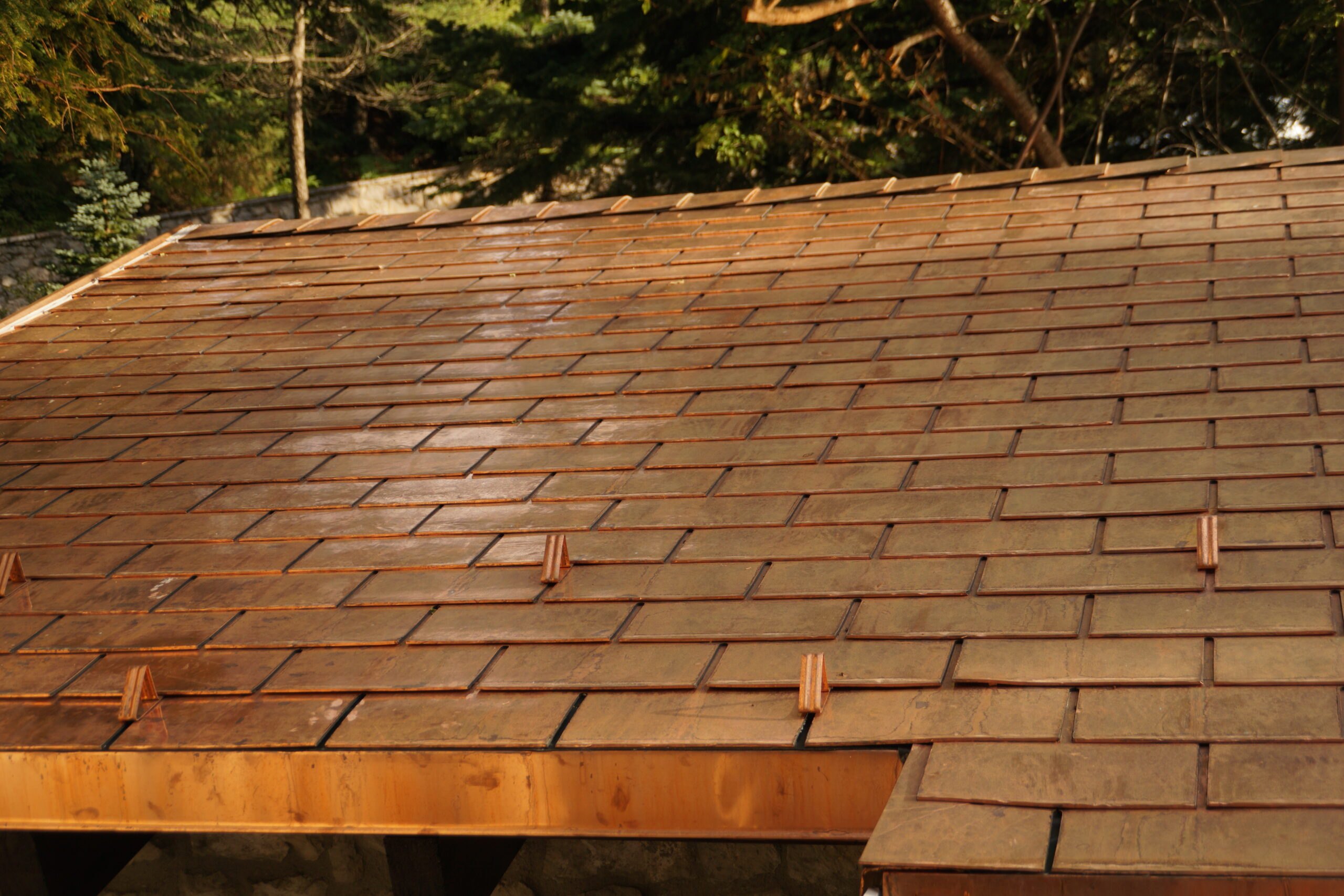 Συνδυάζοντας τα πλεονεκτήματα των ασφαλτικών κεραμιδιών με τη γοητεία και την ελκυστική εμφάνιση του χαλκού, το αποτέλεσμα ήταν μια άρτια ορεινή στέγη εναρμονισμένη με το τοπίο.